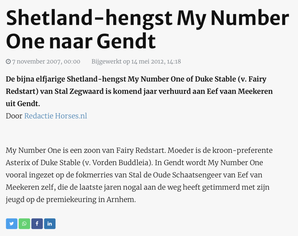 In de media Ook zijn wij diverse keren met onze pony's in de media verschenen. Bekijk het overzicht hier Bekijk het artikel hier Bekijk het artikel hier